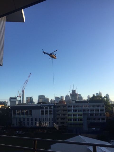 Multiple trades were required to restore the school to pre-storm condition, with works prioritized during school holidays causing minimal interruption to school operations. Another notable element was the use of a helicopter to fit the replacement air conditioning units, gaining access to difficult roof areas.